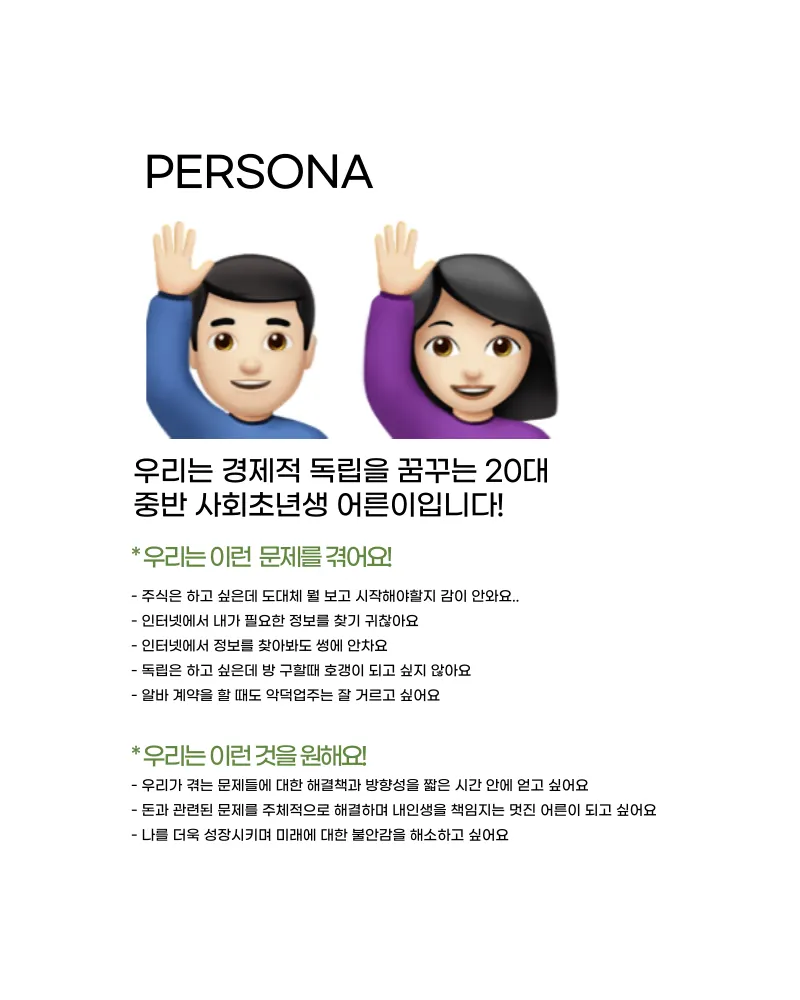 Main Customer : 20대 중반, 경제 지식이 부족하다.