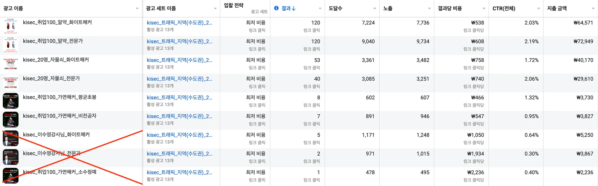 USP 취업 100%를 살린 소재가 가장 성과가 좋았음.